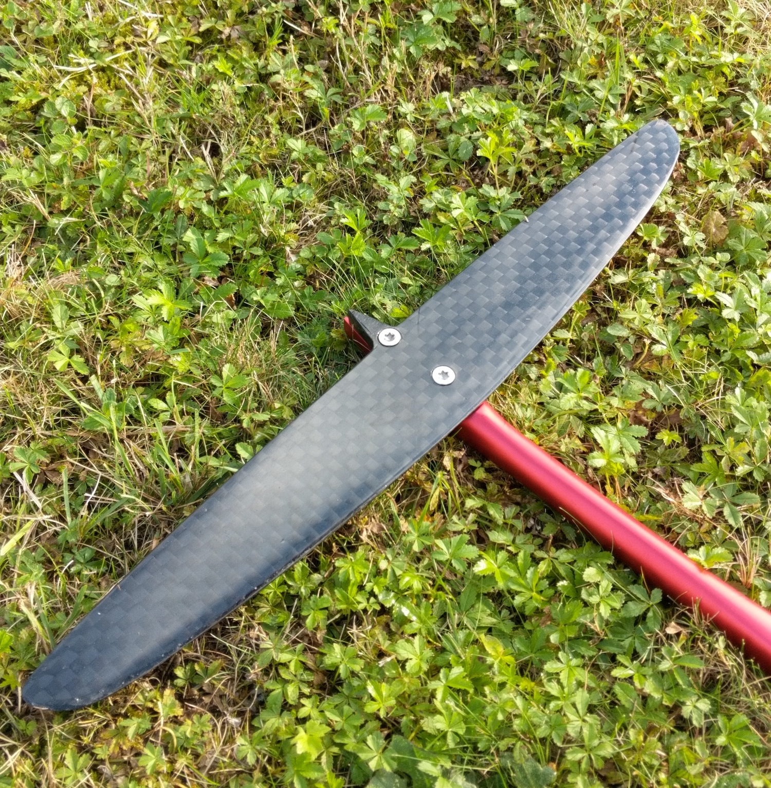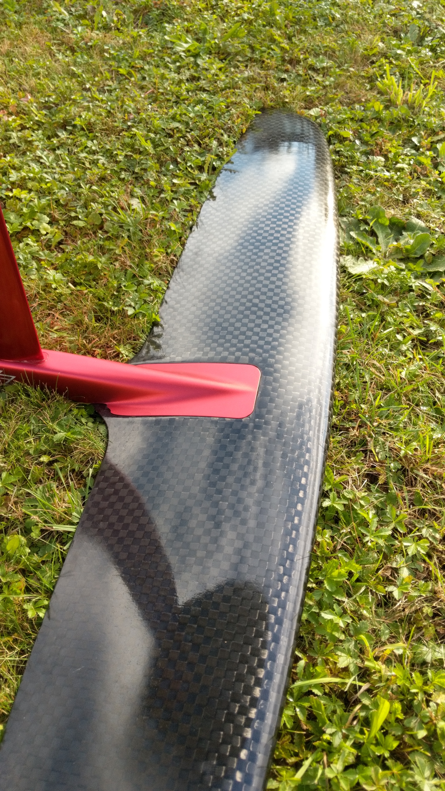 I used a self-made super-strong EPS foam core instead of a CNC'd Airex core. It's just a little heavier (~100g) but has excellent strength due to the mixture of the EPS with epoxy.